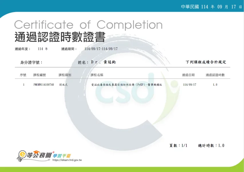 其他證書-台灣泌尿科醫學會性傳染症專家醫師證書
