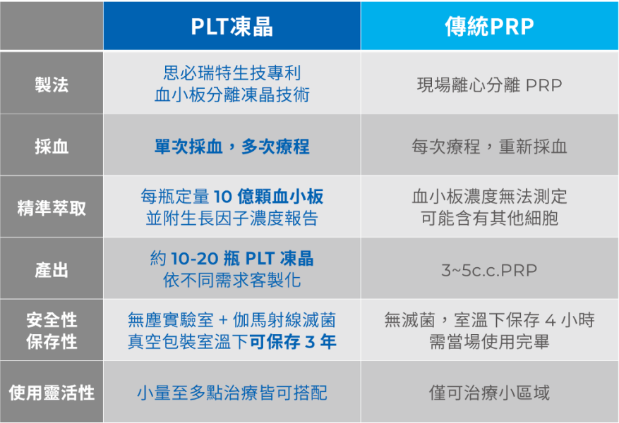 *特別是PLT(血小板生長因子凍晶),濃度比傳統PRP高出5-8倍,能達到更好的治療效果*