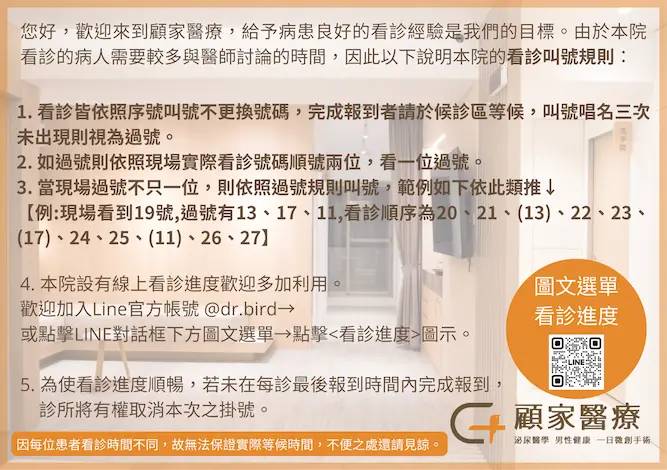 早診: 09:30開始,午診: 14:00 開始,晚診: 18:30 開始。
